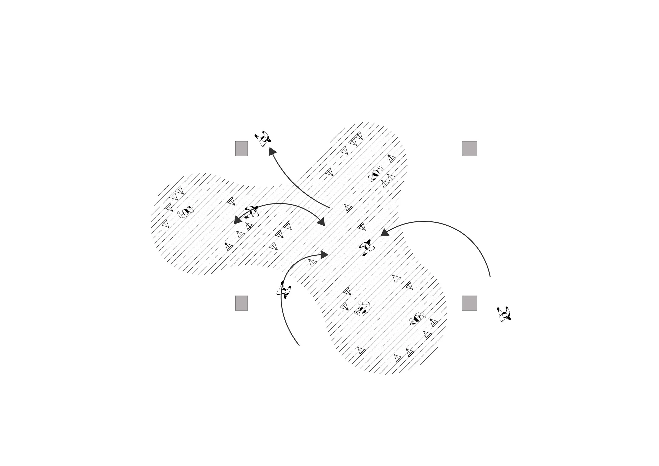 The pavilion adopts an organic and fluid configuration, characterized by multiple points of entry and exit. This non-linear circulation reflects the unstable trajectories of aspiring performers, allowing visitors to wander, pause, and engage with the installation in a personal and exploratory manner.