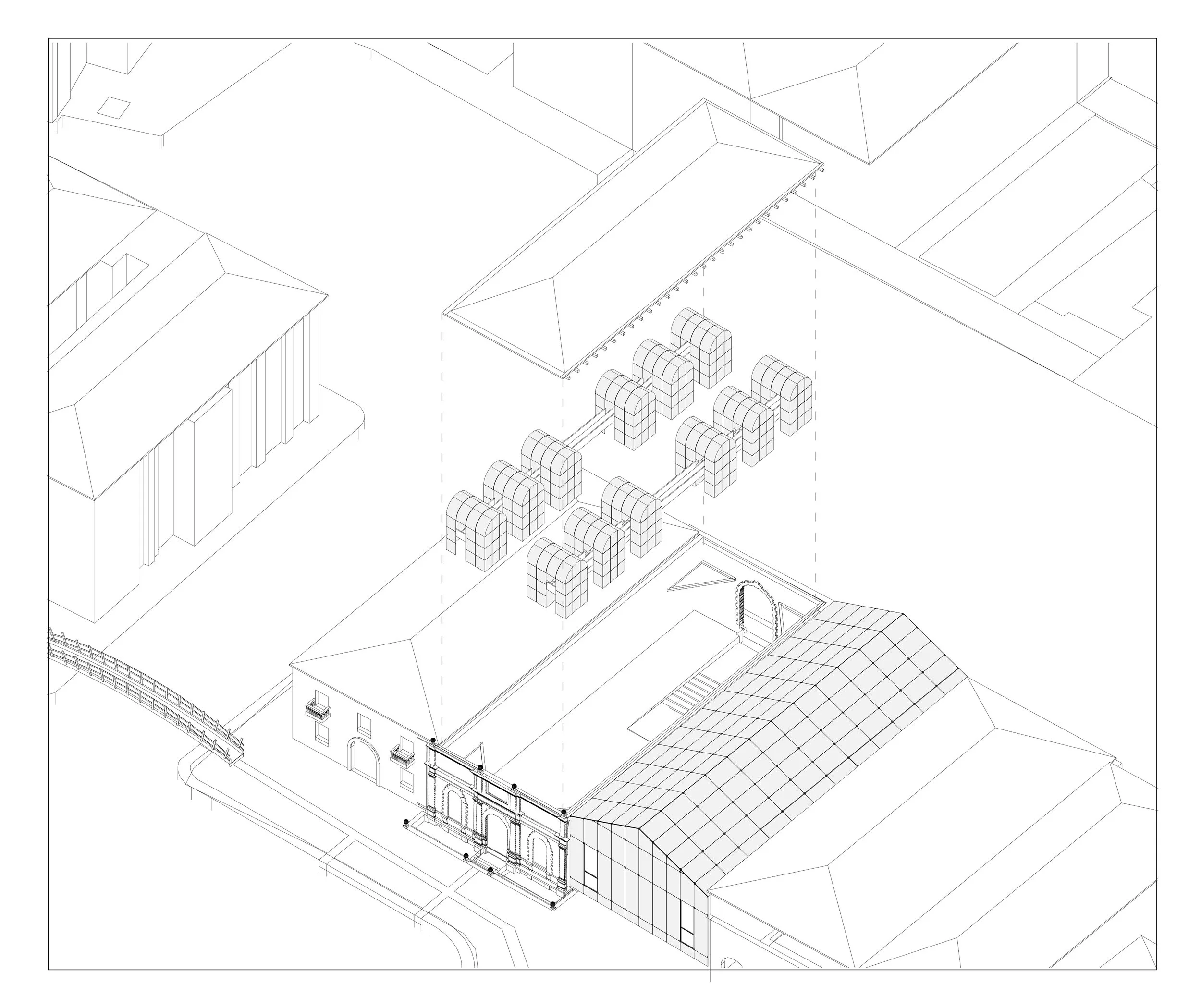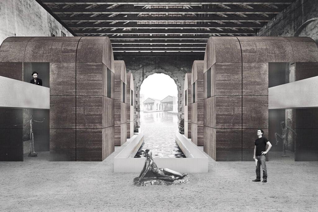 The project proposes the adaptive reuse of the abandoned structure as a FabLab, collaborative workspace, and exhibition venue for young artists participating in the Venice Biennale. Positioned within the Arsenale’s cultural network, the intervention reactivates the building as a productive and public space, bridging heritage and contemporary creative practice.